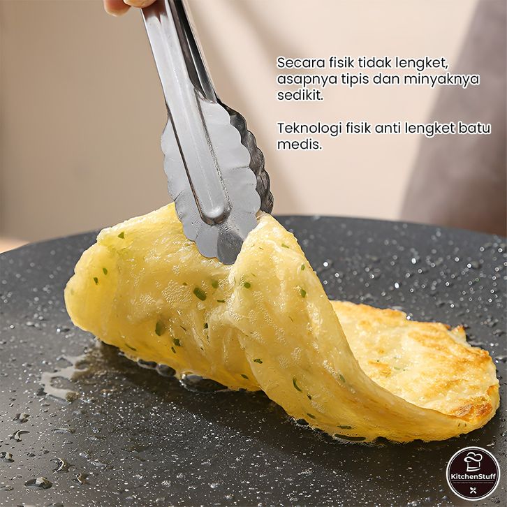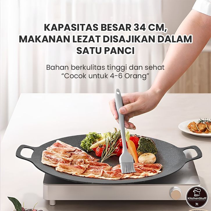 Wajan Panggangan Anti Lengket Bulat Diameter 34CM Grill Pan Datar untuk BBQ Daging dan Sayuran Wajan Panggang