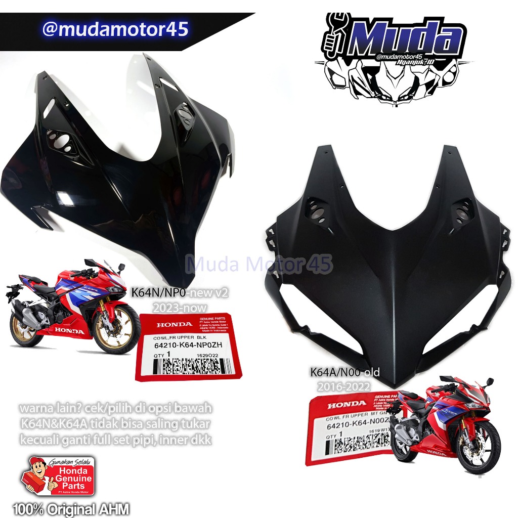 COVER BODY DEPAN CBR250RR K64A K64N 2017 2023 HITAM DOFF MERAH GLOSSY MATTE 64210-K64-N00ZK-N00ZA FAIRING BATOK KAP CBR