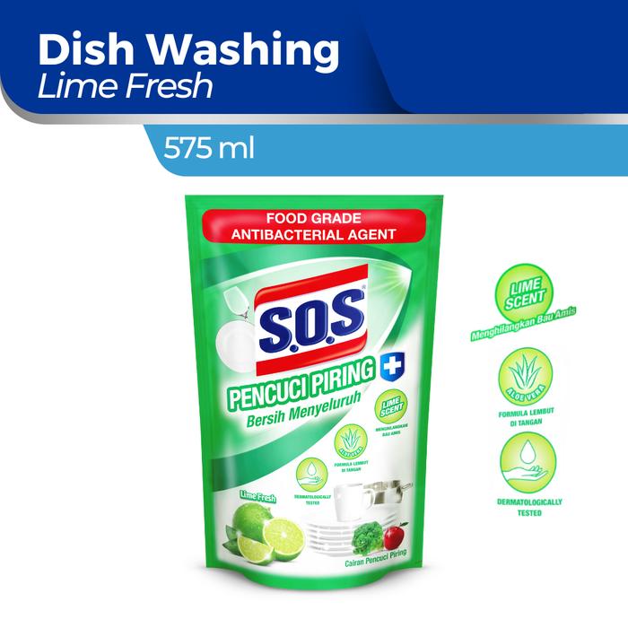SOS Sabun Cuci Piring Refill Isi Ulang 575ml [Exp : 05.2028] - Lime
