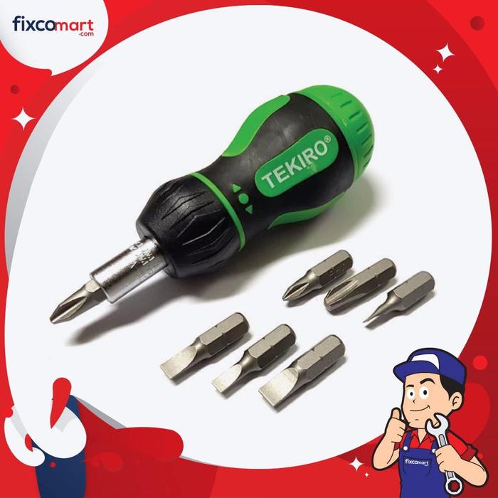 Tekiro Obeng Ratchet Set 7 In 1 Stuby / Tekiro Obeng 2 Arah Set - Green