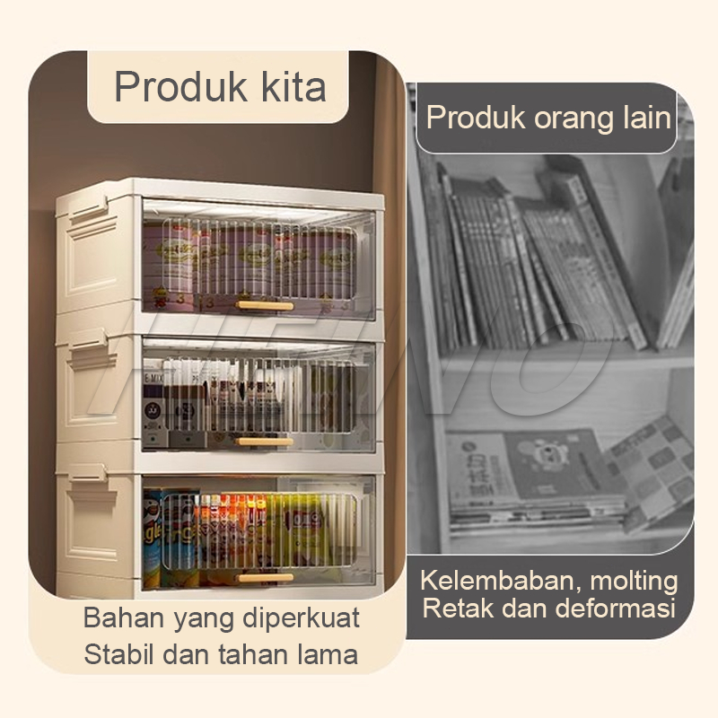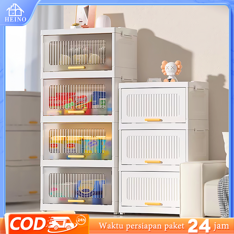 HEINO 40CM50CM Lemari Plastik Piring Tertutup Lemari Penyimpanan Multilayer Dengan Roda Pintu Lemari Kapasitas Besar Tutup Transparan