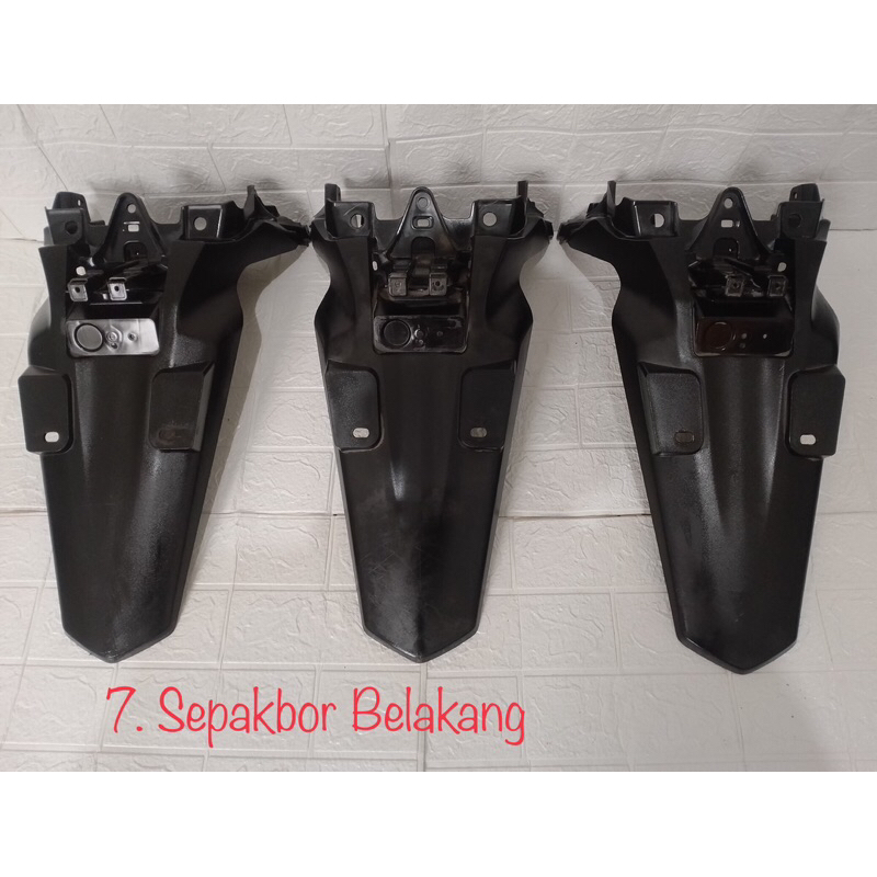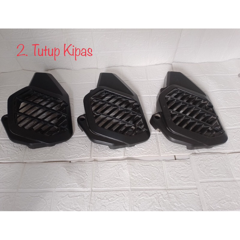 1. Cover Tengki, 2. Tutup Kipas, 3. Tutup Kenalpot, 4. Cover Sepidometer, 5. Cover Kunci, 6. Cover Lumpur, 7. Sepakbor Belakang, 8. Cover filter set