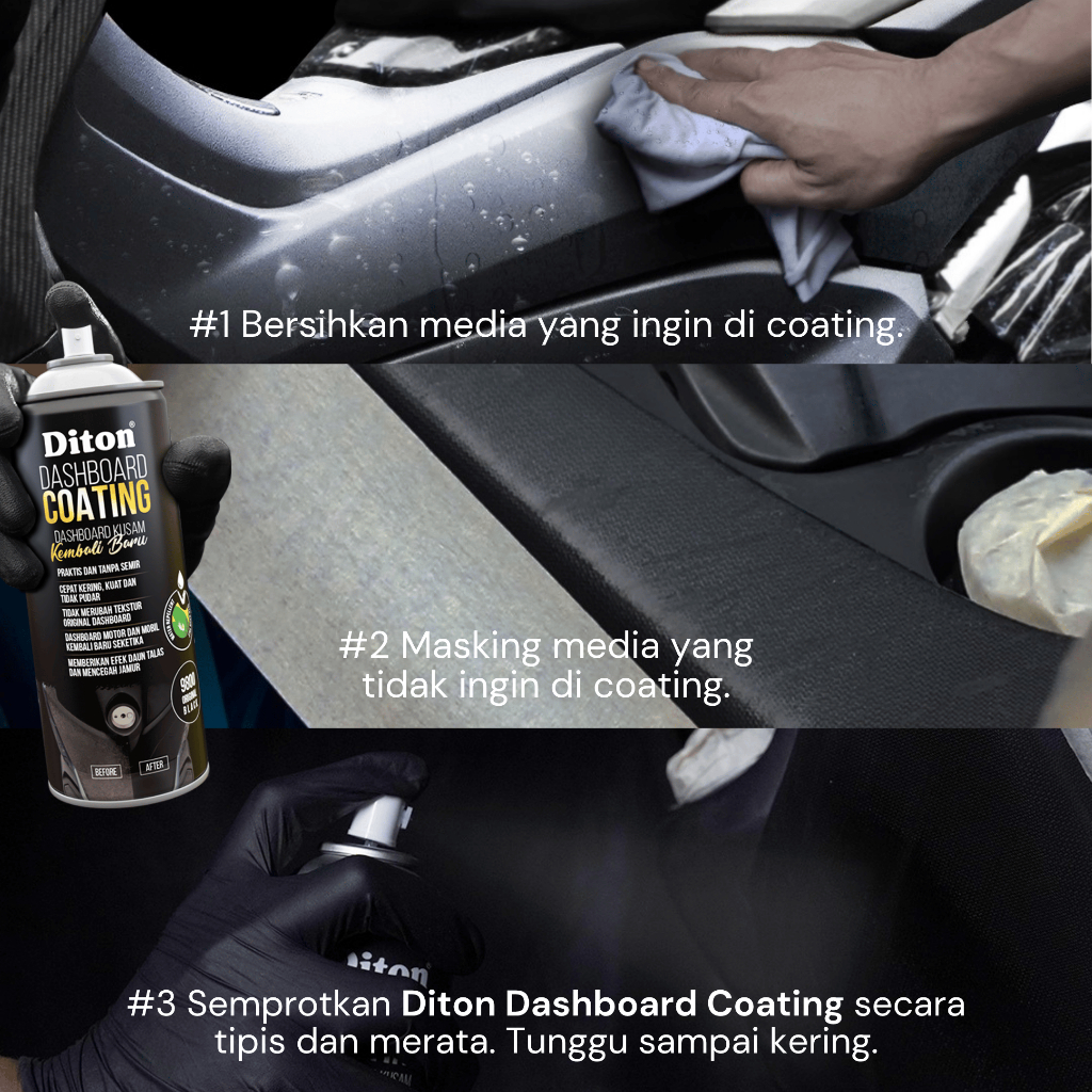Diton Premium Dashboard Coating | Cat Semprot Pilox Body Kasar Halus Motor Hitam Doff (DC 9800 Original Black)