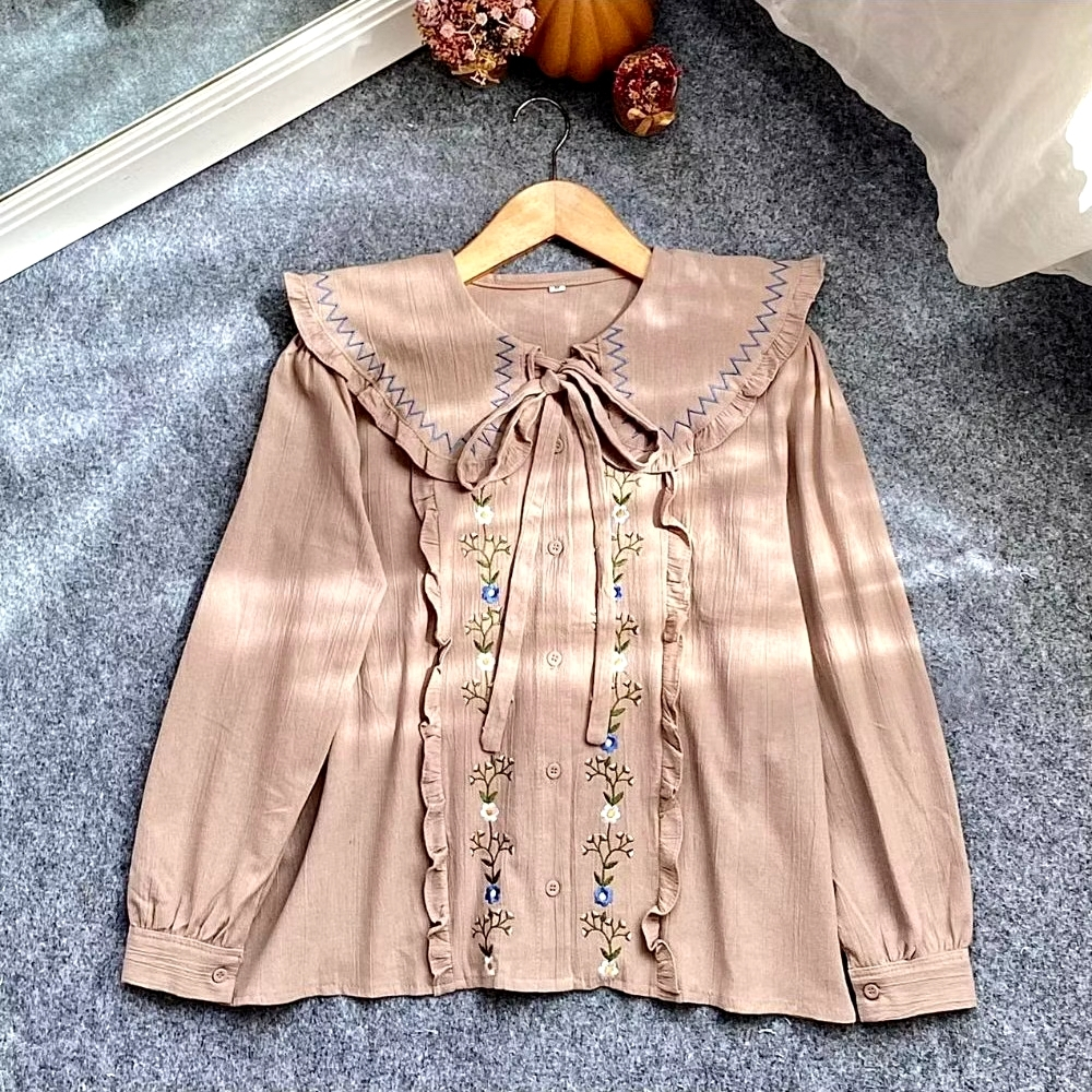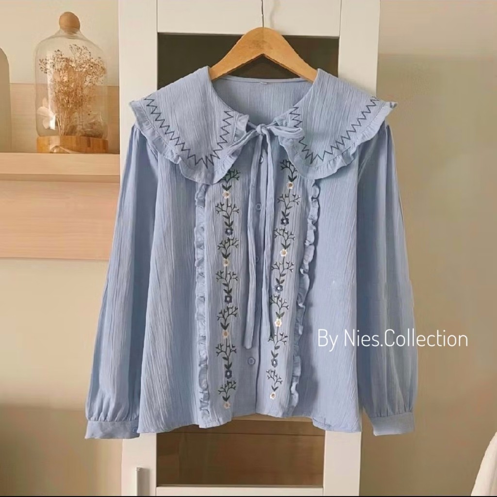 Calianna Blouse - Atasan Bordir Wanita Korean Style Bahan Linen Crinkle - LD 120 110 104 96 92