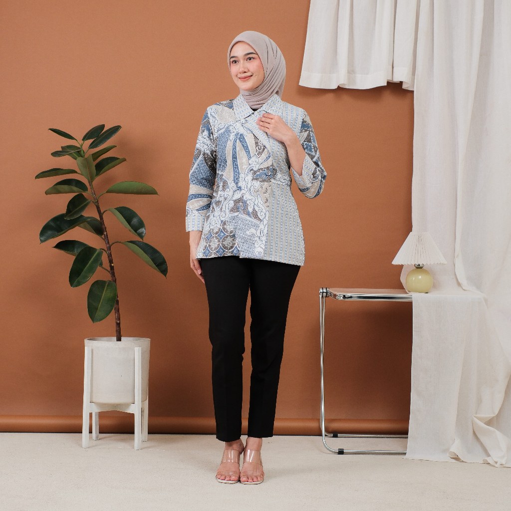 DJOWO Batik Kerja Wanita Modern Lengan 3/4 Panjang Motif Davina Series Atasan Kantor Jumbo Terbaru
