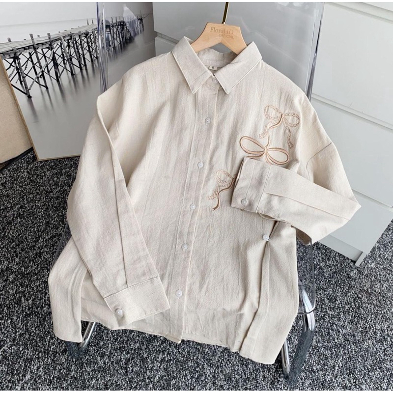Lora Blouse Bordir Rebon Shirt Atasan Kemeja Wanita Linen Angel Premium