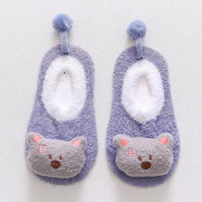 SEPATU KAOS KAKI PREWALKER BAYI ANAK BULU LEMBUT KOREA MOTIF HEWAN - BULU PINK KUCING, S