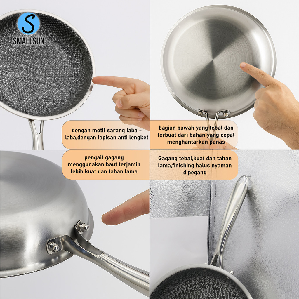 [SS] Wajan Penggorengan Stainless Steel Frying Pan Honeycomb Bahan Tebal Best Quality Anti Lengket