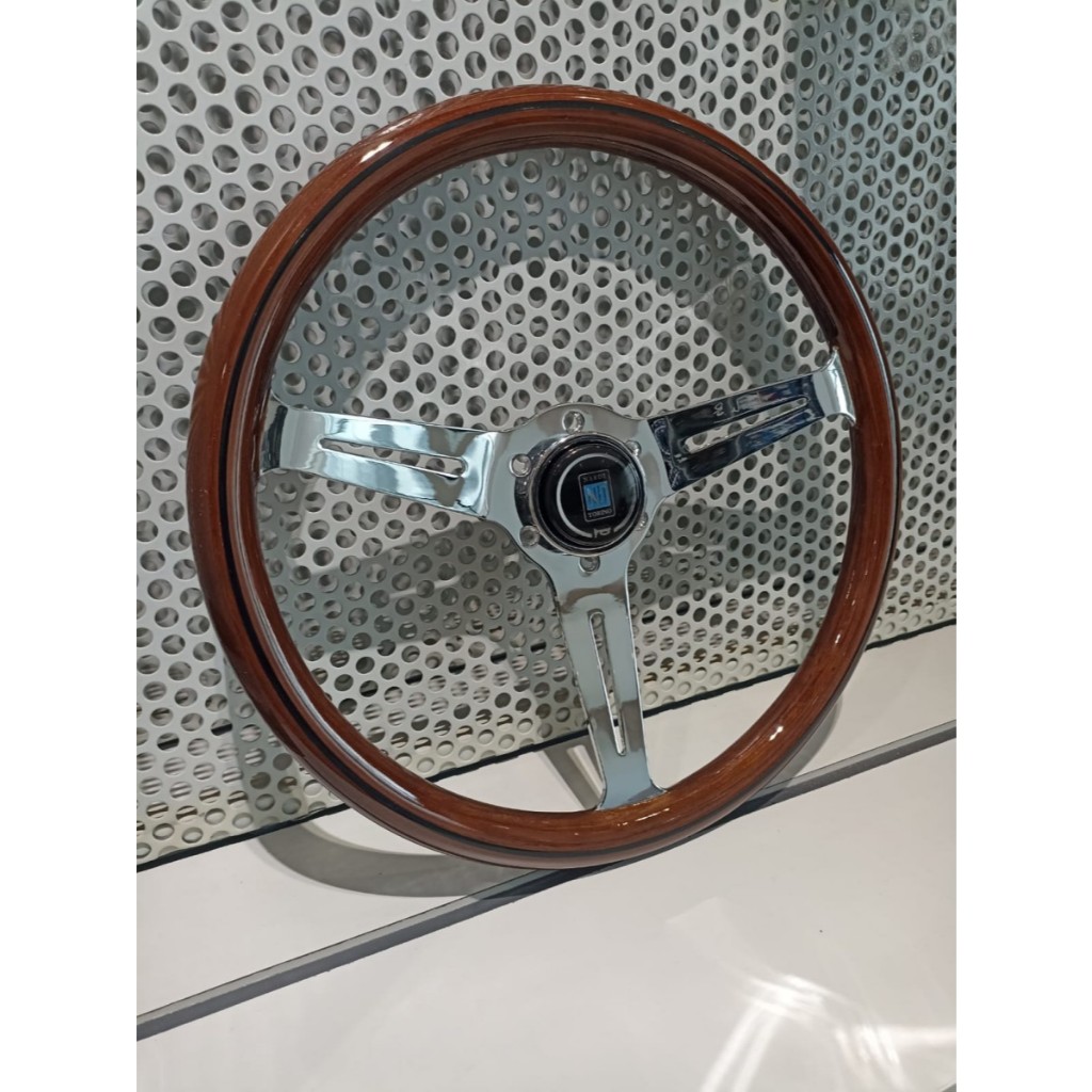 Steer Nardi Wood Chrome Silver Classic 14 inch Stir Racing Full Kayu
