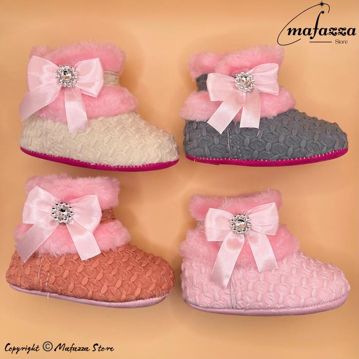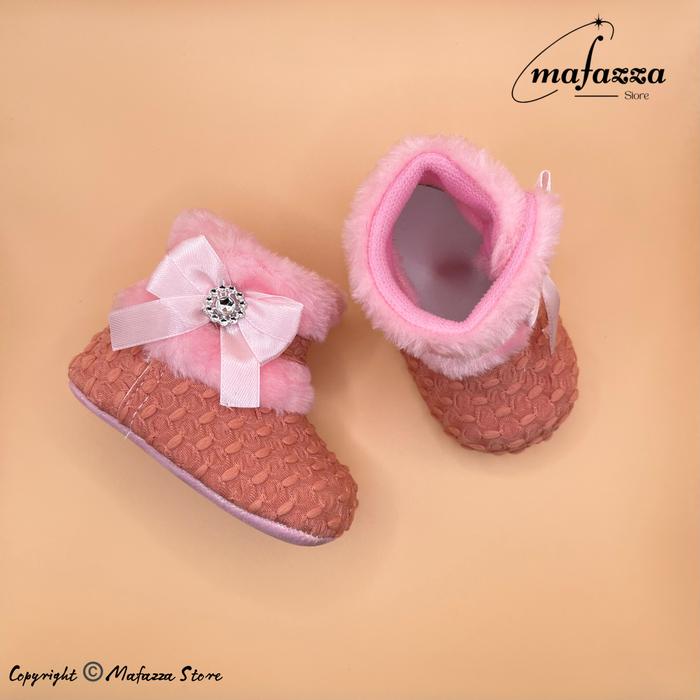 MAFAZZA SEPATU BAYI PEREMPUAN BULU SNEAKERS PREWALKER ANAK PEREMPUAN 0-14 BULAN PITA CANTIK CEWEK - PINK, 22