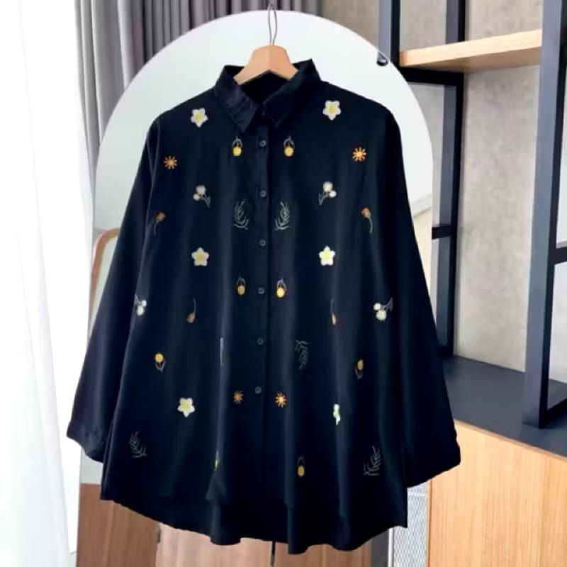 Blouse Wanita Oversaize Bahan Linen Remi Premium Kemeja Bordir wanita Terbaru