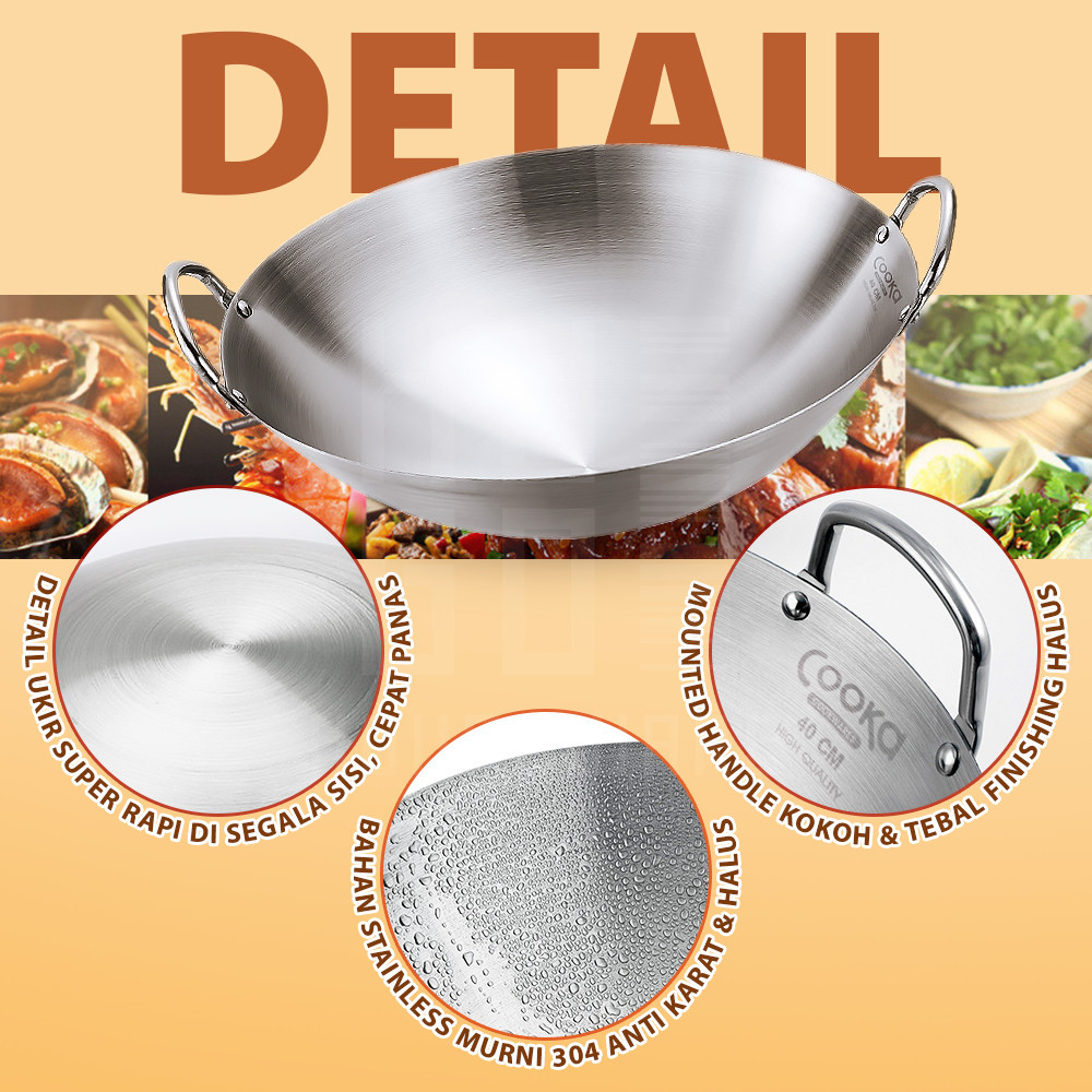 HUGO Wajan Penggorengan Stainless Tebal Anti Lengket Kuali Serbaguna Wokpan Premium Quality