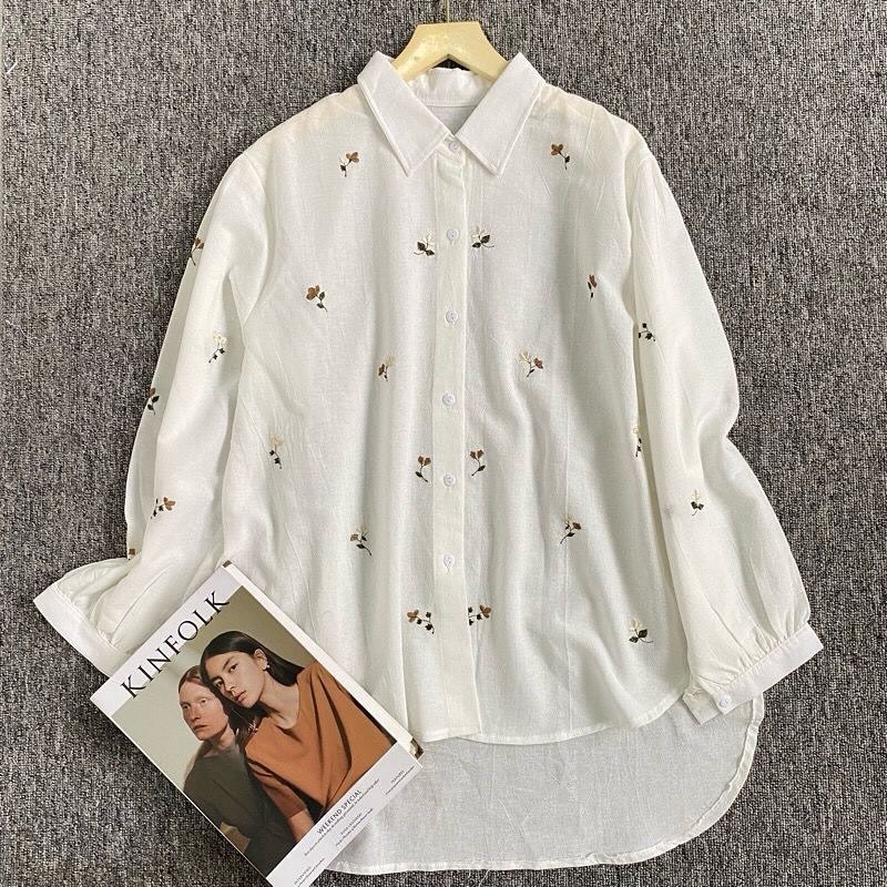 Basic Blouse Bahan Linen Rami Baju Atasan Wanita Terbaru Kemeja Wanita Blouse Korean Style ELF