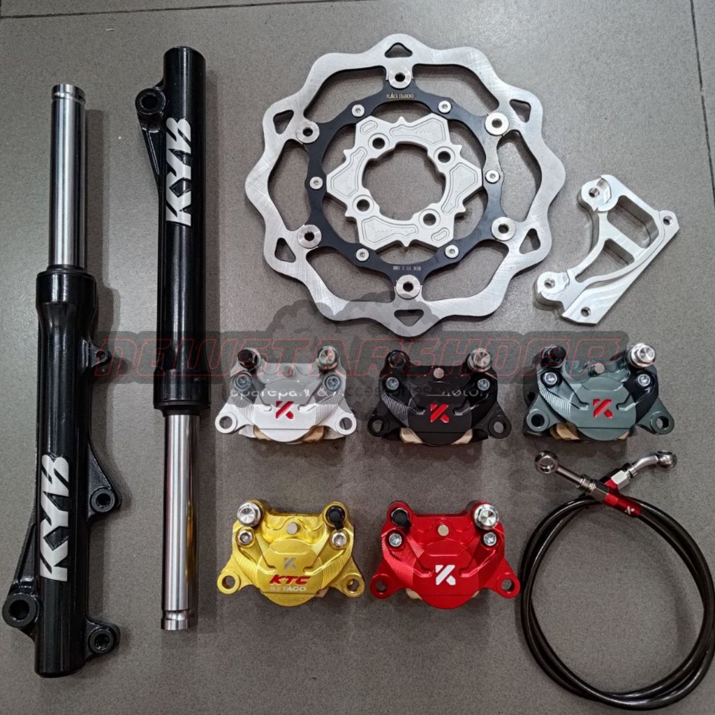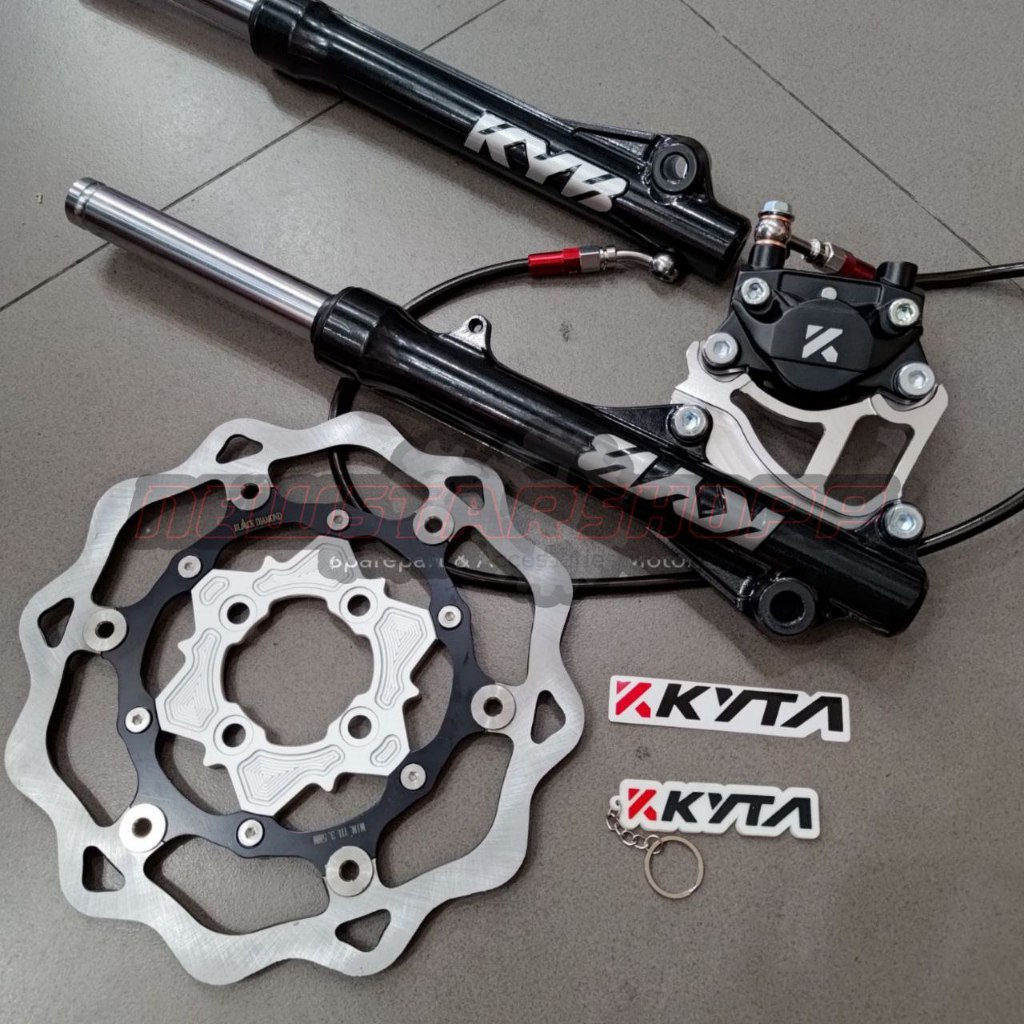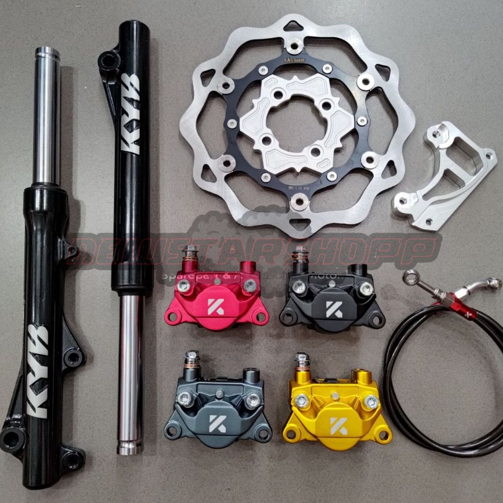 Paketan Shockbreaker Shock Skok Depan KYB Zeto + Kaliper KTC 2piston 2p KNV2 Slim + Disc Piringan Floating 260mm Model G