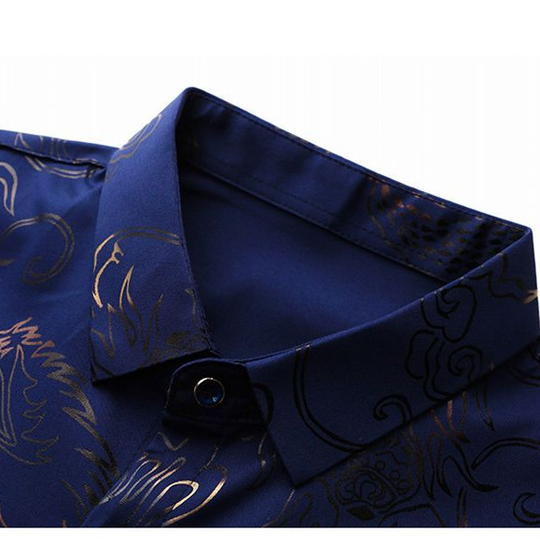 Men's Ice Silk Short Sleeve Non-Iron Casual Dragon Print Shirt Plus Size Half Sleeve Shirt