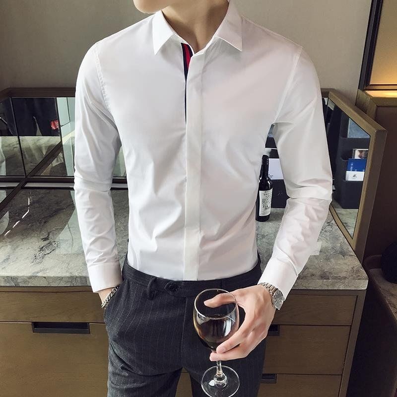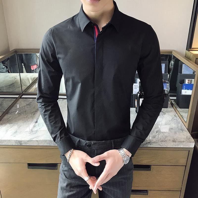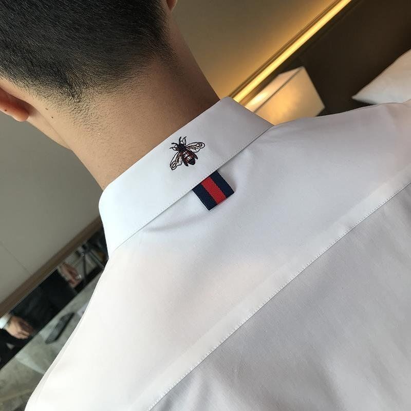 Kemeja Lengan Panjang Bordir Lebah Kecil Fashion untuk Pria Gaya Korea Slim Fit Kemeja Kasual Bisnis