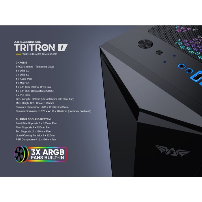 Casing Pc Gaming Armaggeddon Tritron 1 Atx With Argb Fan