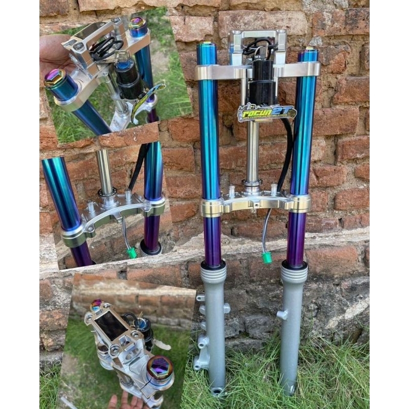 SHOCK SHOCKBEKER DEPAN NINJA PNP RX KING SEGITGA CNC AS BLUE RAINBOW + SET FREE VOLTMATER