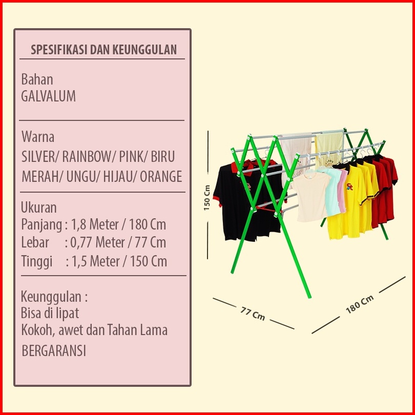 Kb Jemuran Pakaian Baju Rak Handuk Jemuran Besar Aluminium Galvalum Kokoh 9 Palang