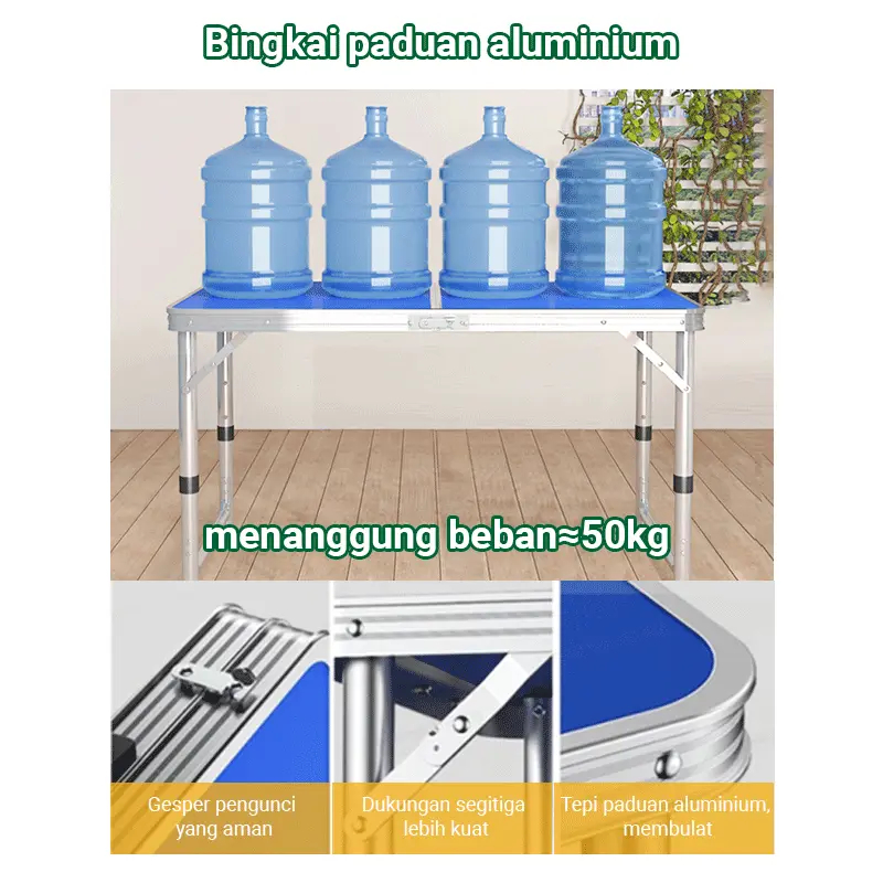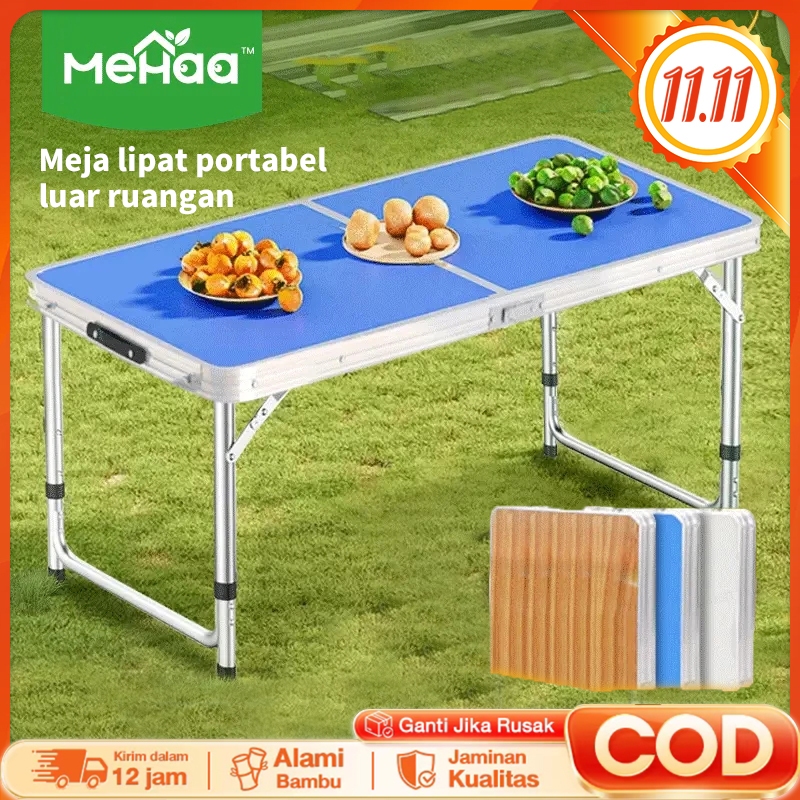 MeHaa meja lipat outdoor 120x60cm portable adjustable bahan aluminium anti karat utk campingpiknik