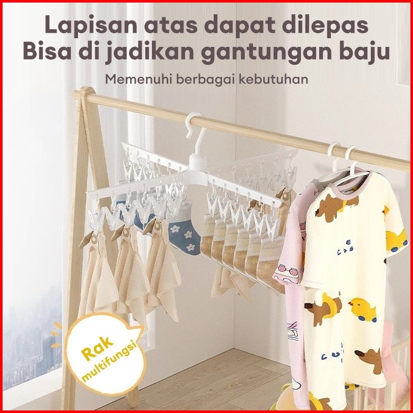 Cottoli Jemuran Menara Rak Jemuran Baju Bayi Lipat Portable Jemuran Handuk Serbaguna Kaos Kaki