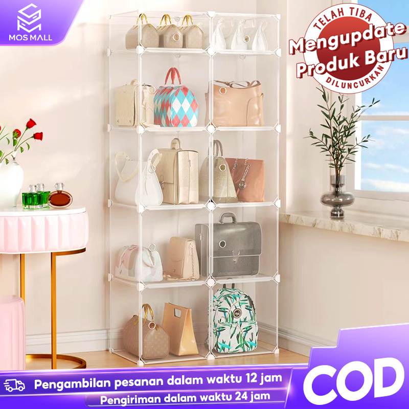 MOS Rak Tas TransparentRak Buku Anti DebuLemari Boneka MainanLemari Helm