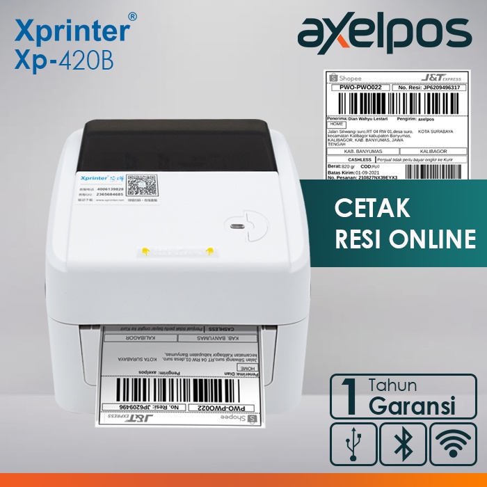 Axelpos PRINTER BARE THERMAL LABEL RESI PENGIRIMAN XPRINTER XP-420B A6 USB / USB-BLUETOOTH / USB - WIFI
