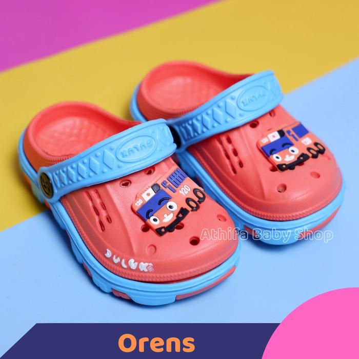 SANDAL ANAK BAIM LAKI COWOK CEWEK PEREMPUAN ANAK-ANAK SENDAL SLOP BAYI BALITA KARAKTER TAYO UMUR USIA 6 BULAN 2 3 4 5 TAHUN - MERAH, 19