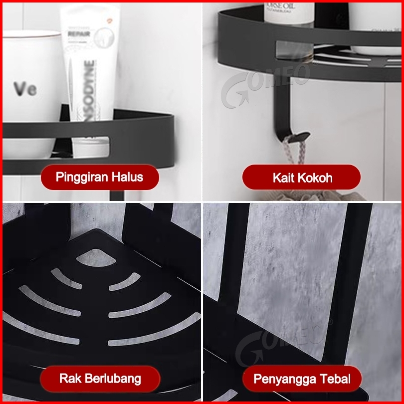 Rak Susun Sudut Tunggal Ganda Gomeo Kotak Sabun Gantungan Kamar Mandi Toilet Jemuran Dinding