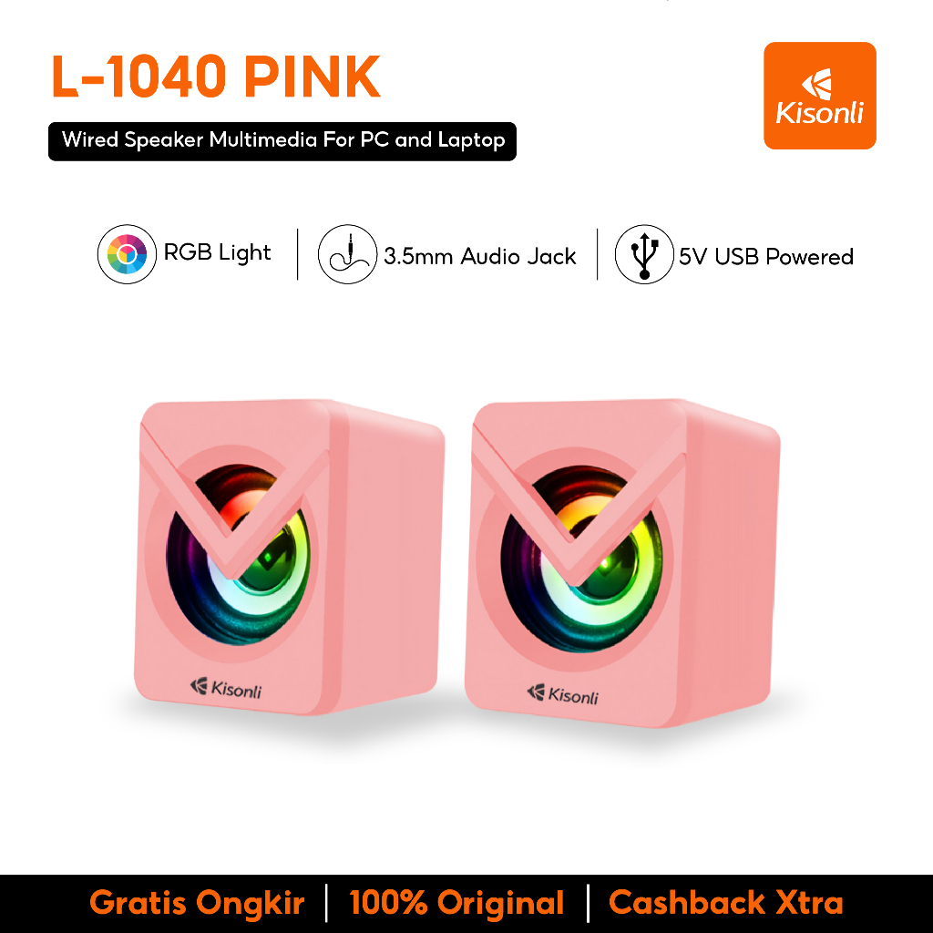 Speaker Kisonli L1040 Gaming Komputer Laptop Led Rgb Light Switch Volume Control Pink