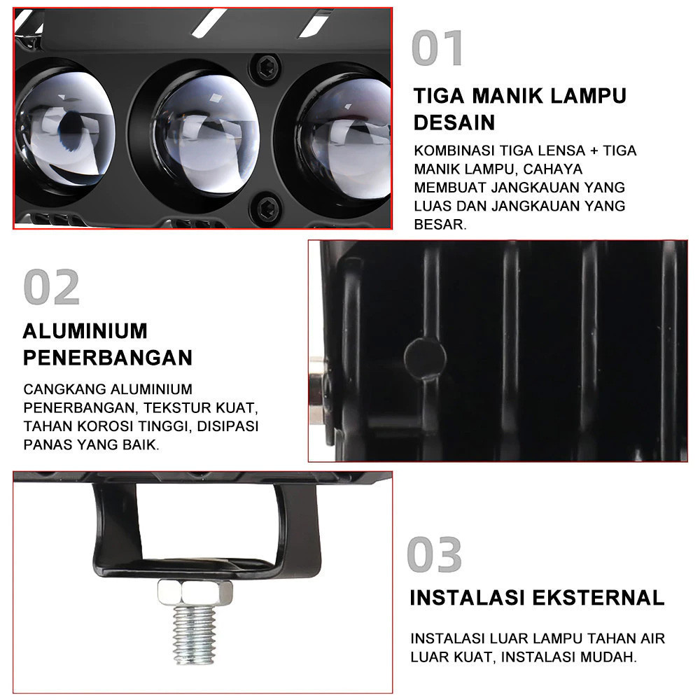 60W Lampu Tembak Laser Sql 3 Mata Full Alumunium Premium Kuningputih - Kuning 12Volt-24 Volt Mobil Truck Fuso Tronton Av