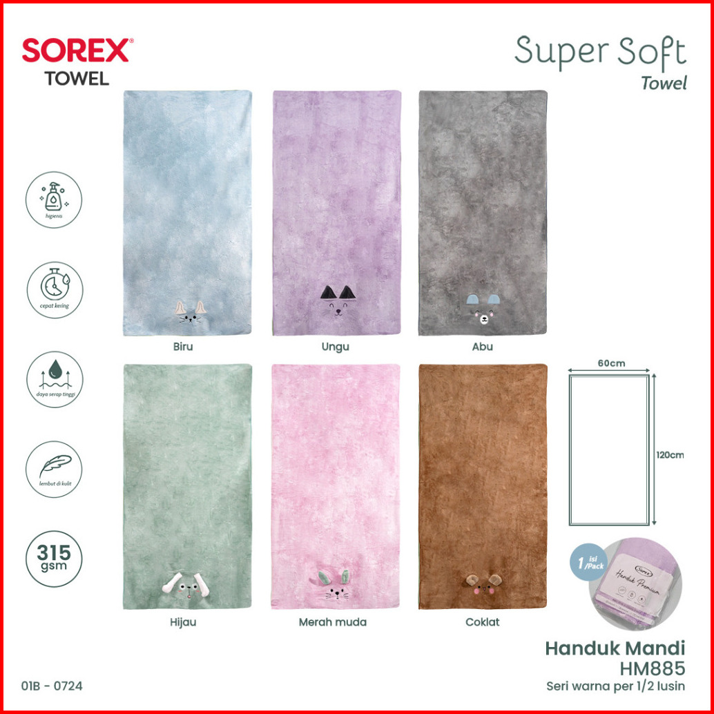 Sorex Handuk Mandi Premium Dewasa Dan Anak Microfiber Towel Lembut Halus Daya Serap Tinggi Hm 885