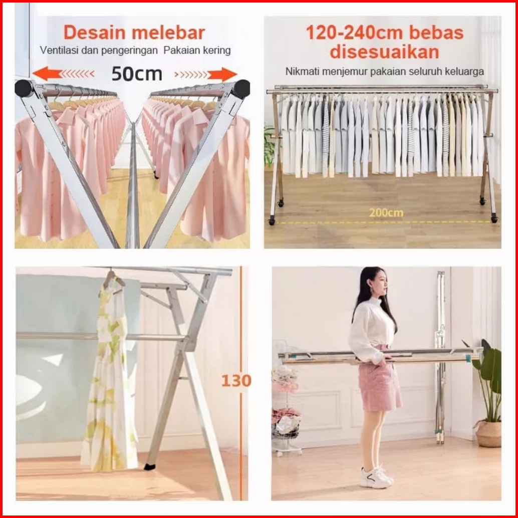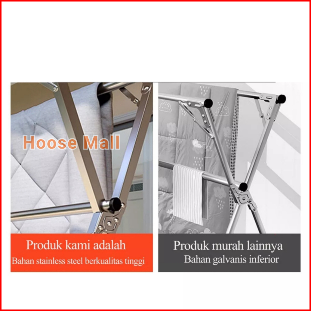 Jemuran Baju Lipat Stainless Steel Jemuran Pakaian Anti Karat Jemuran Baju Portable Stainless