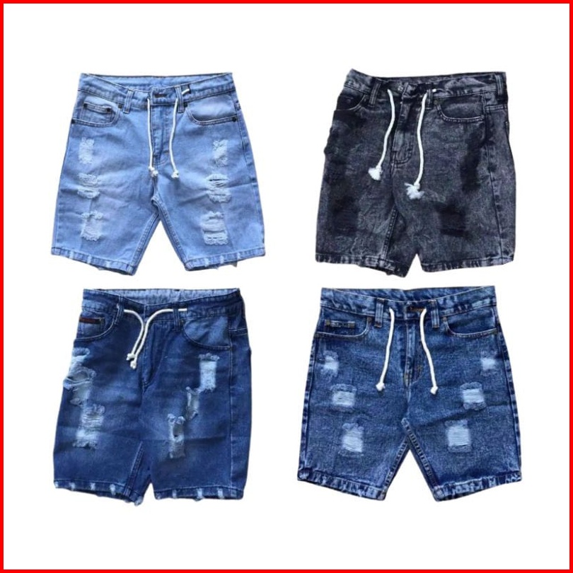 Celana Pendek Jeans Denim Pria Sobek
