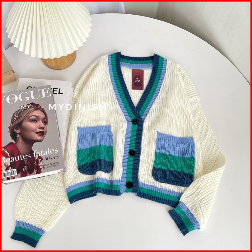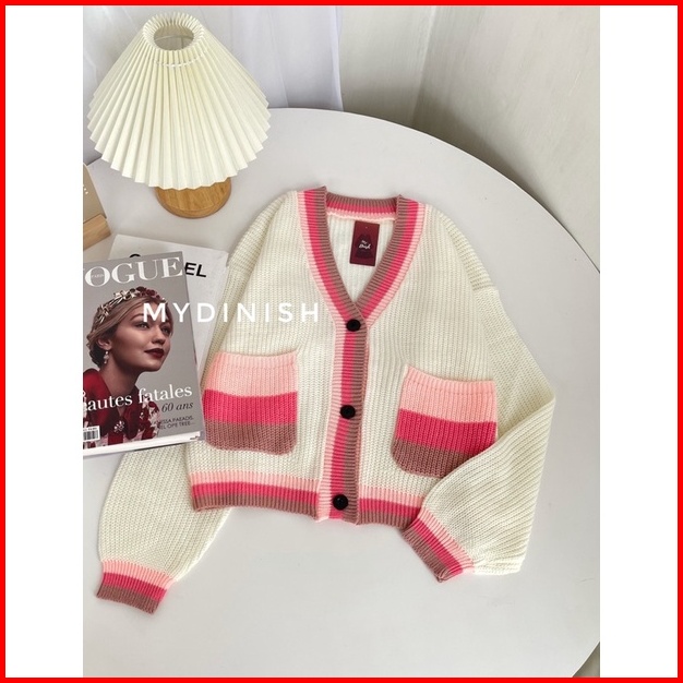 Alma Pocket Cardy - Cardigan Wanita Rajut Korean Retro