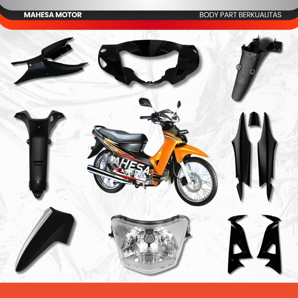 Batok Depan Tromol, Batok Depan Cakram, Batok Belakang, Reflektor Depan, Lampu Sein, Mika Spidometer, Lampu Stoplamp, Tameng Depan, Spakbor Depan A, Spakbor Depan B