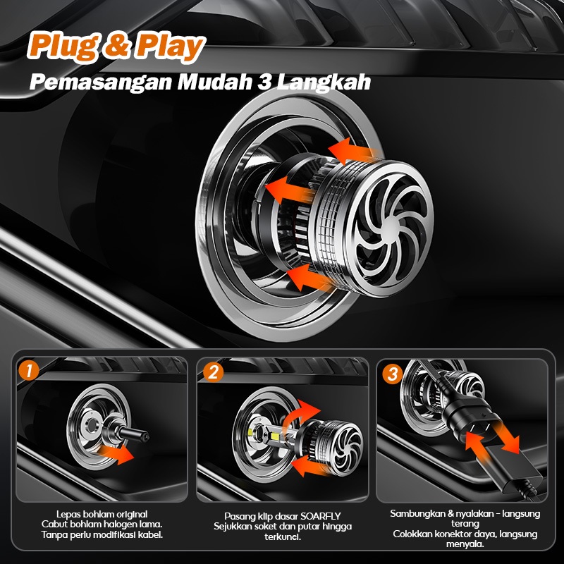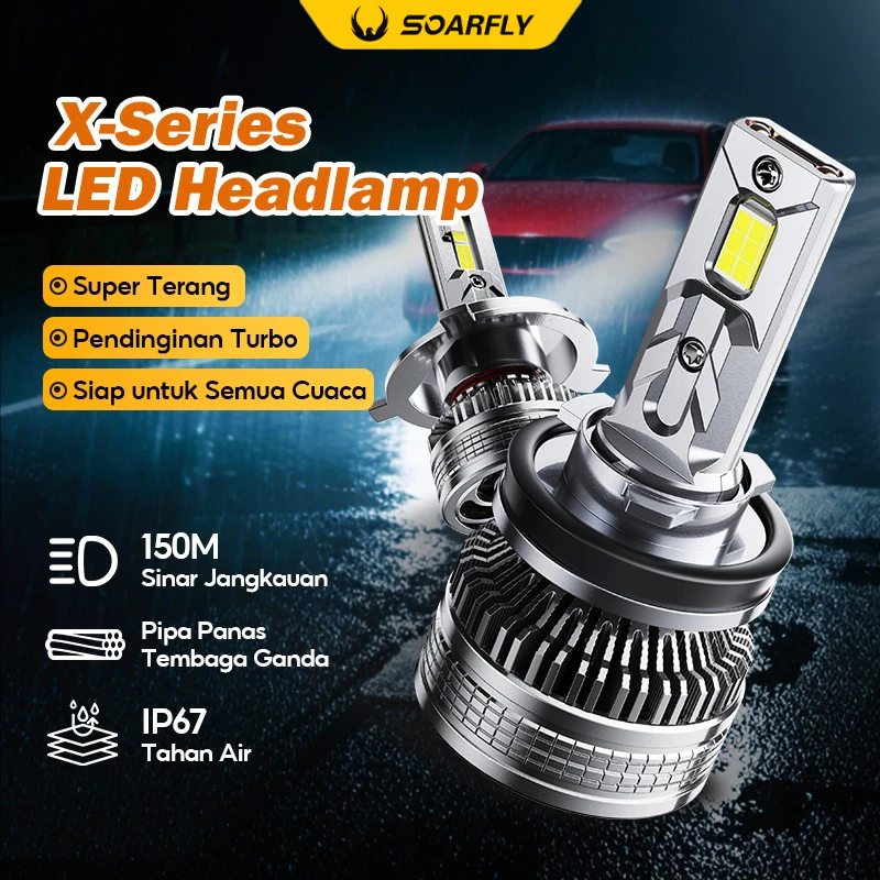Soarfly Lampu Led Mobil X9 Super Terang H4 H11 H16 H1 H7 H8 H9 65 Watt