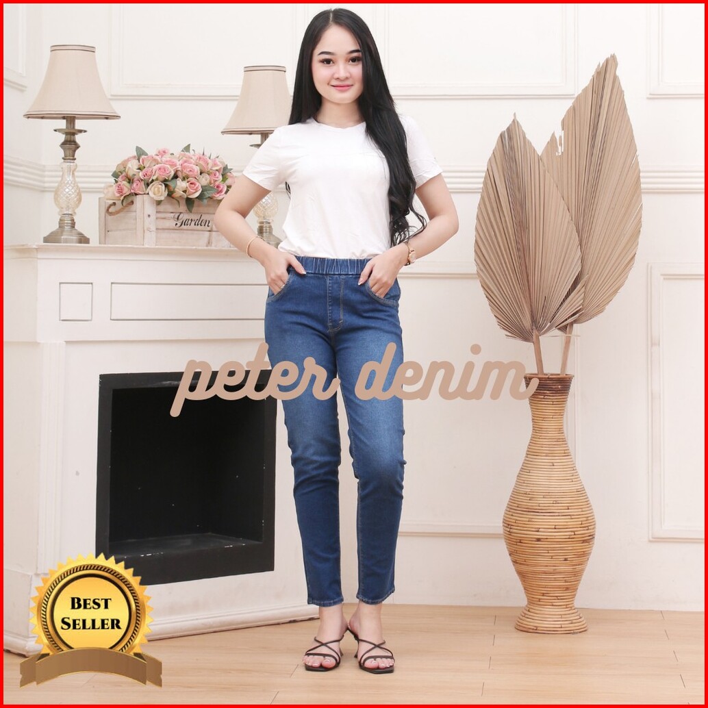 Celana Jeans Wanita Pinggang Karet-jeans Wanita-celana Jeans Wanita Kekinian Model Terbari