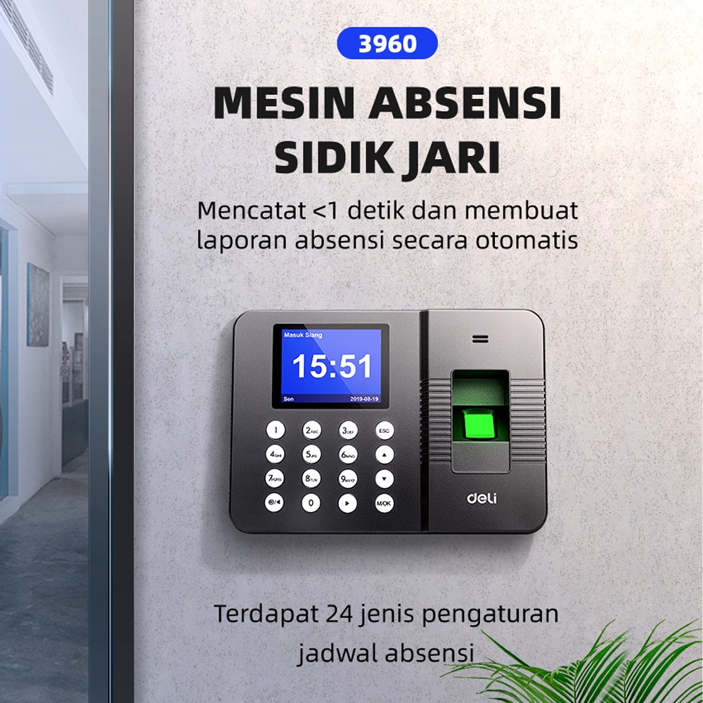 Mesin Absensi Deli Sidik Jari Bahasa Indonesia Usb Tanpa Instalasi E3960
