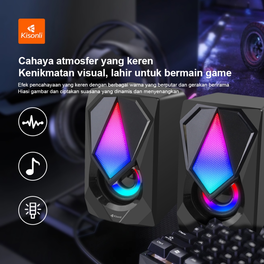 Speaker Kisonli L9090 Plus Gaming Laptop Komputer Led Rgb Light Volume Control