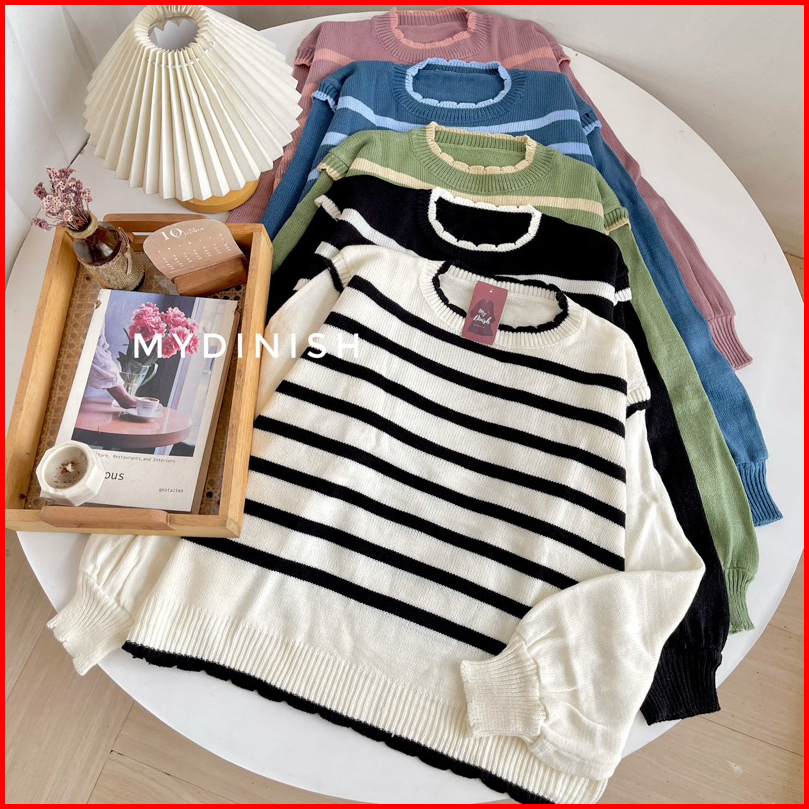 Febrina Curly Blouse - Atasan Blouse Wanita Motif Garis Korean Style