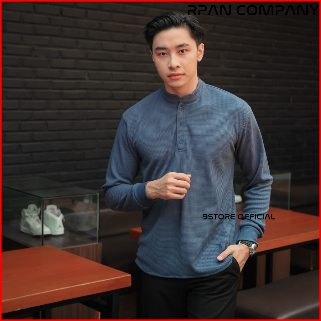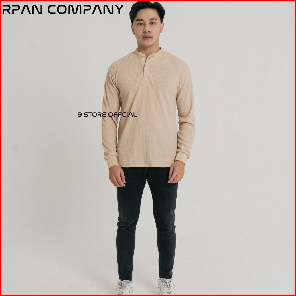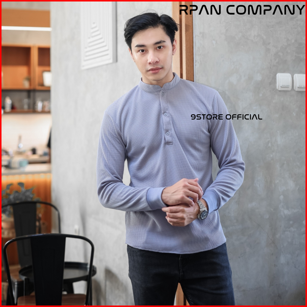 9storeofficial - Henley Waffle Long Sleeve Henley Waffle Tees Baju Waffle Tangan Panjang Kancing Crewneck Waffle Tshirt