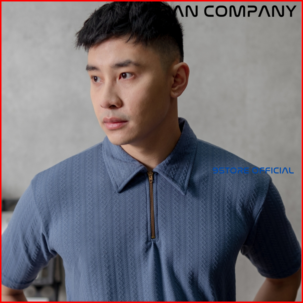 Polo Shirt Knit Motif Kaos Pria Polo Shirt Zipper Knit Fabric Lengan Pendek.