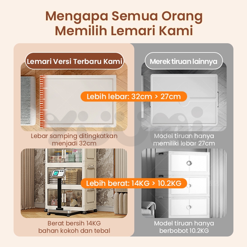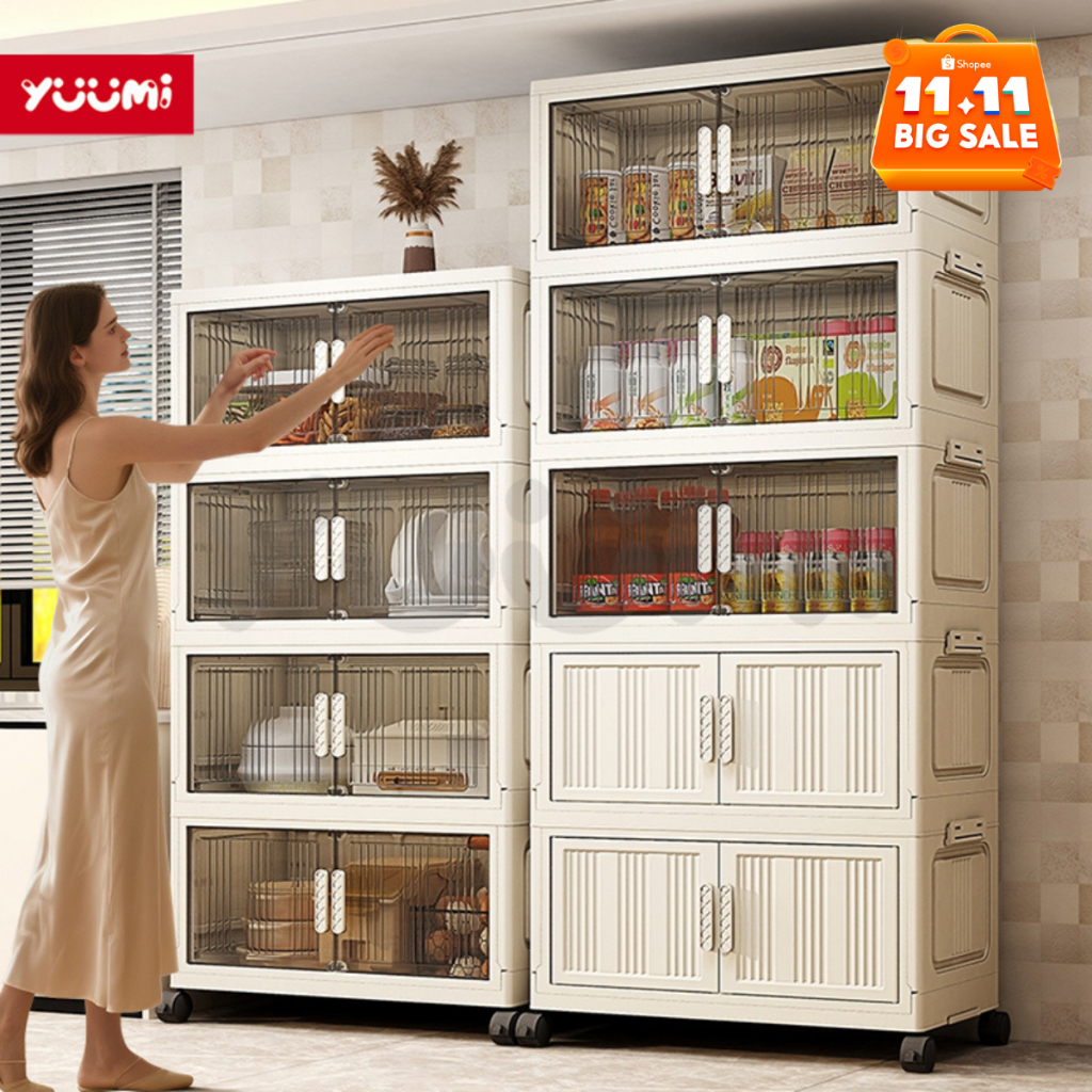 Yuumi Lemari Plastik Susun Besar Lemari Pakaian Anak & Bayi, Rak Baju Multifungsi, Organizer Hemat Ruang, Katrol Senyap, Anti Debu