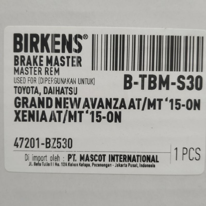 8Mm. Bergaransi Bm Assy Master Rem Atas Grand New Avanza Great Xenia All New Terios Birkens Original