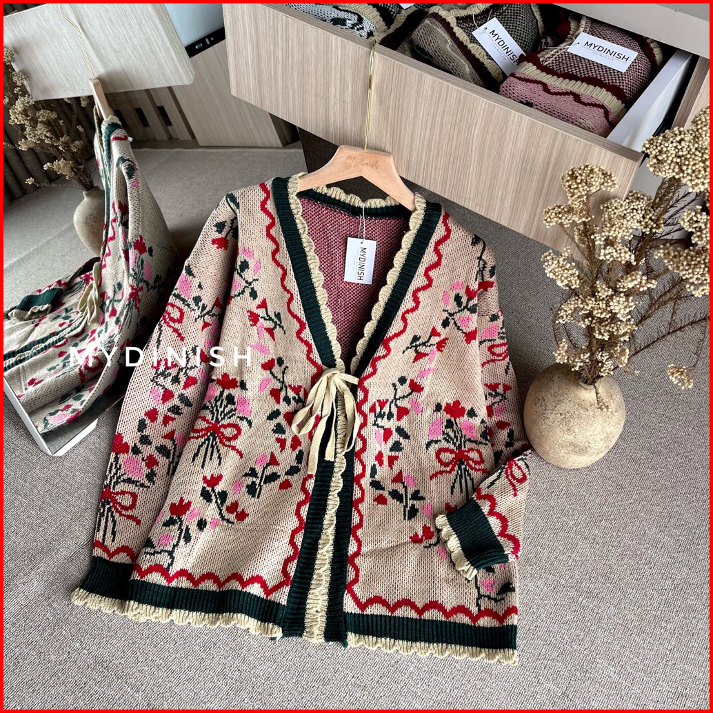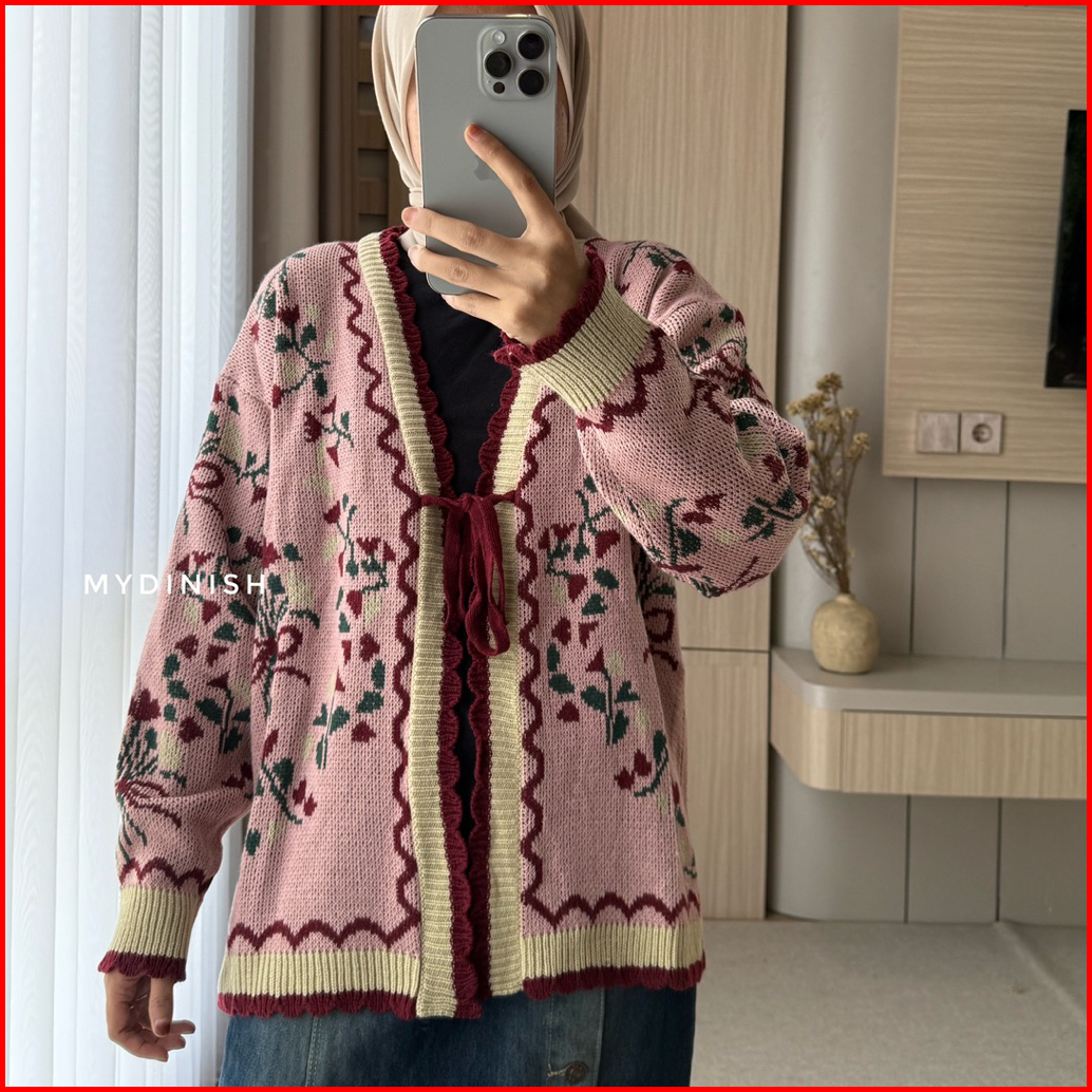 Deuis Flower Cardy - Cardigan Rajut Wanita Motif Bunga