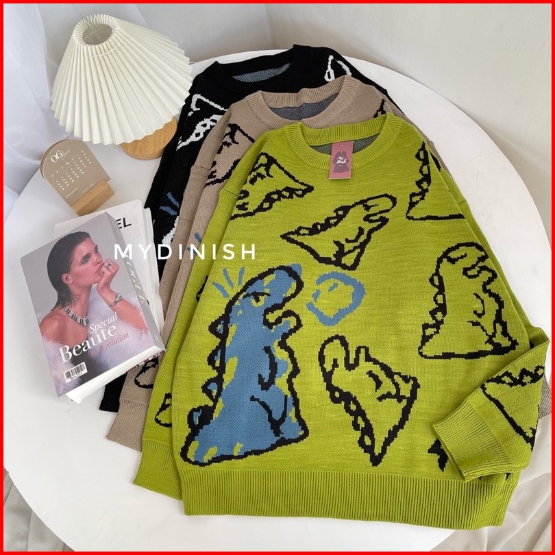 Dino Oversize Sweater Rajut Terbaru Wanita Avocado Khaki Hitam
