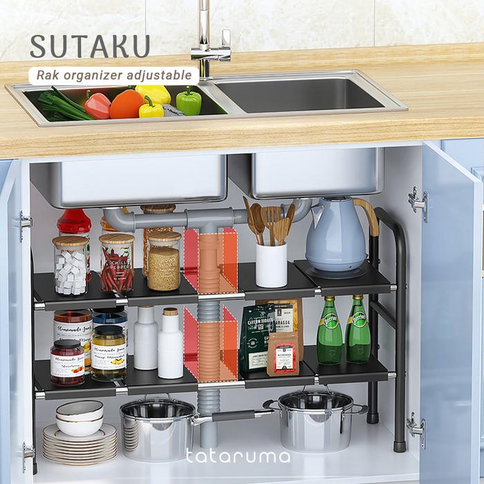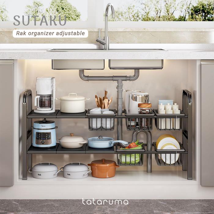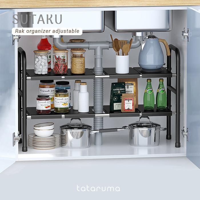 SUTAKU - RAK TINGKAT DAPUR UNDER SINK CUSTOMIZED BEBAS ATUR PAPAN KERANJANG ADJUSTABLE EXTENDABLE KITCHEN RACK - SINGLE