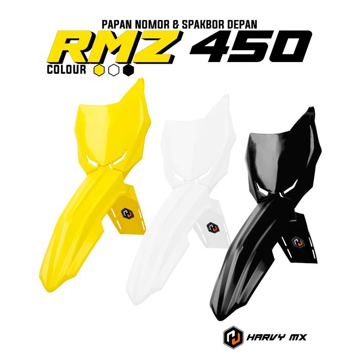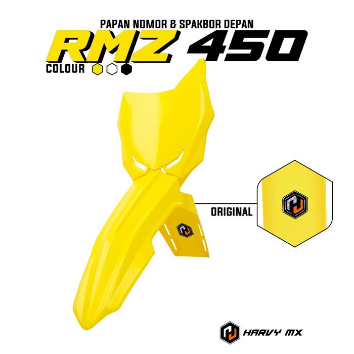 [Star] HARVYMX SPAKBOR DEPAN PAPAN NOMOR SUZUKI RMZ 450 - 1 SET SPAKBOR DEPAN + PAPAN NOMER, KUNING