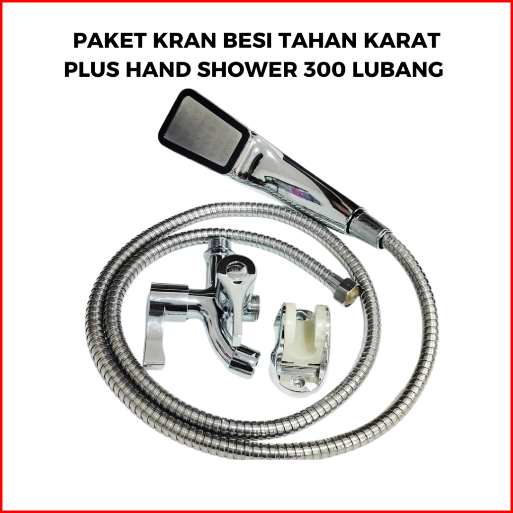 Paket Kran Besi Tahan Karat Plus Hand Shower 300 Lubang Komplit